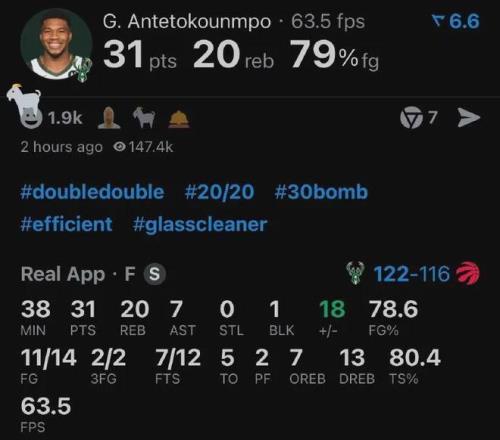 本赛季至今,字母哥出战五场比赛,场均上阵32.6分钟,狂轰34.2分13.4板7.2助1.2帽炸裂数据,投篮命中率68.4%,场均以62.5%命中率扔进1记三分球(8中5),在他带领下雄鹿暂时以4胜2负排名东部第三。