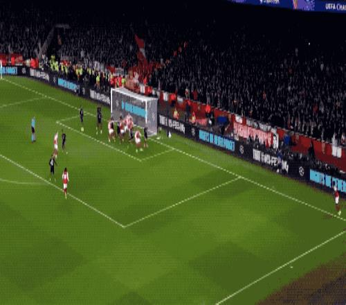 第22分钟,阿森纳又一次利用角球破门,萨卡送出助攻,廷贝尔抢在诺伊尔出击前,头槌破门。