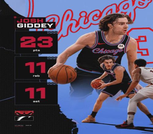 吉迪再次收获23分11板11助三双数据,本赛季至今场均贡献20.3分9.4板8.9助,三项命中率47.6%、40.4%和75.6%,有着赛季场均三双的巨大潜质,今夏休赛期与公牛达成四年1亿美元续约合同。